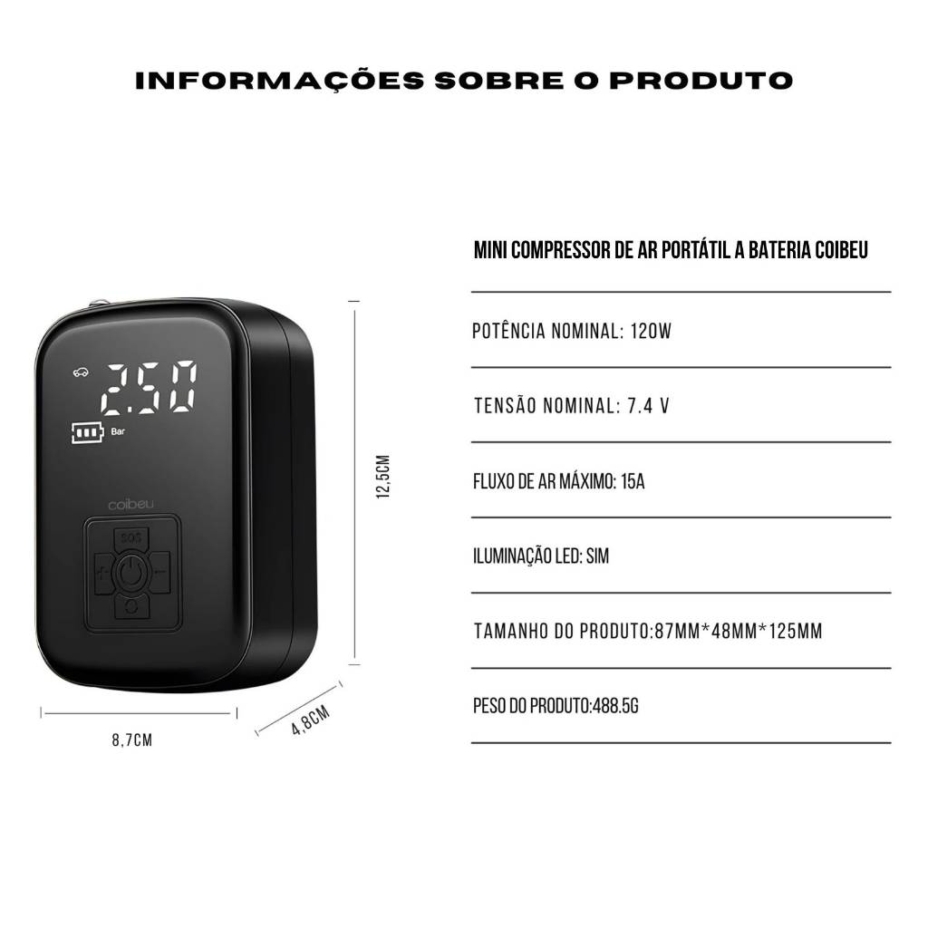 GOSTOU? ACREDITA QUE O PRODUTO POSSA TE AJUDAR? ENTÃO NÃO PERCA TEMPO APROVEITE AGORA MESMO ESSA OFERTA E LEVE PRA CASA O SEU MINI COMPRESSOR DE AR PORTÁTIL A BATERIA COIBEU!